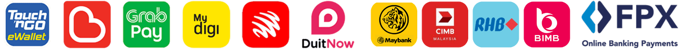 - E-wallets: DuitNow, MyDigi, Touch’n Go, Grabpay, and Boost